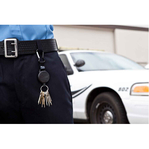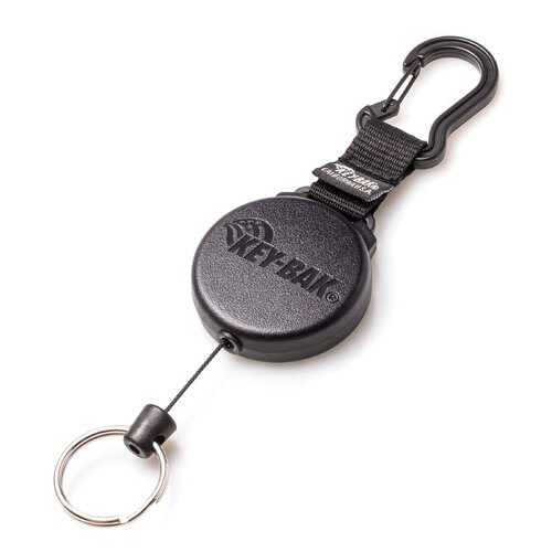 The SECURIT Heavy Duty Carabiner Retractable Keychain conveniently attaches to almost anything, making this one of the most widely used retractable keychains on the market. Built in the USA with globally sourced materials, the SECURIT has a strong molded black polycarbonate case and a retractable cord made with DuPont™ Kevlar® fiber. Attach your keys or small tools to the zinc plated split ring and secure the carabiner to your belt clip, work belt or backpack. When you need your keys just pull them out, when you're done let them go and the built-in tether retracts back into place until you need them again. When you need a versatile retractable reel the SECURIT Heavy Duty Carabiner Keychain is your best option.